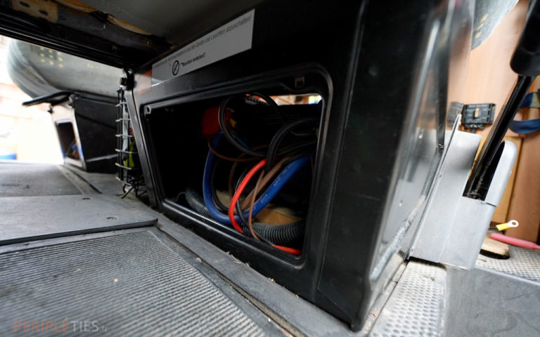 On ne connaît pas vraiment l’intérêt d’avoir deux batteries de 100 A plutôt que directement une de 200… Peut-être que quelqu’un pourrait avancer une réponse. Mais personnellement, pour le gain de place, pour même autonomie, on opterait directement pour une Batterie gel de 200 A.