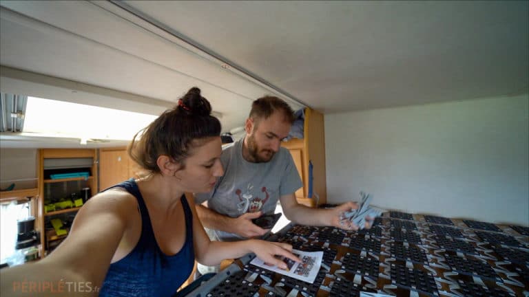 Si comme nous, vous voulez améliorer votre couchage existant ou si vous êtes en train d’aménager votre camping-car, van ou fourgon, essayez le système de sommier modulable Moduloflex prêt-à-monter qui s’adapte à toutes les formes de couchages et aux dimensions de tout type de lit. Nous l’avons installé depuis plusieurs mois et nous en sommes ravis : Simon n’a plus mal au dos après quelques nuits en voyage !