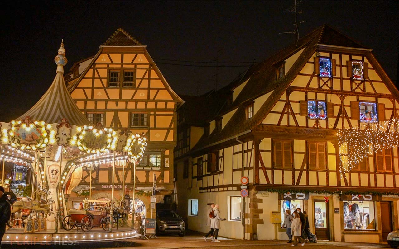 Les Maisons à colombages, les façades éclairées, les odeurs de pain d’épice, de vin chaud sur les villages de Noël offrent un décor et une ambiance vraiment féérique.