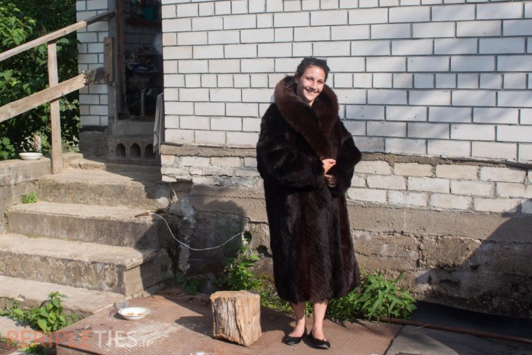 Dans les armoires, deux épaisses fourrures de lapin attendent de reprendre du service l’hiver prochain. La maman d’Uladzimir me propose de l’enfiler. Je dois dire que la simple idée de revêtir une peau de lapin, me fend le coeur. Mais pour le coup on n’est pas de la fourrure de convenance pour poules de luxe. Il s’agit de résister à des hivers à 40 degrés. Je ne fais pas ma chochotte et je m’exécute. Ce jour restera celui où j’ai essayé un manteau de fourrure par 36 degrés au soleil. C’est pas banal !