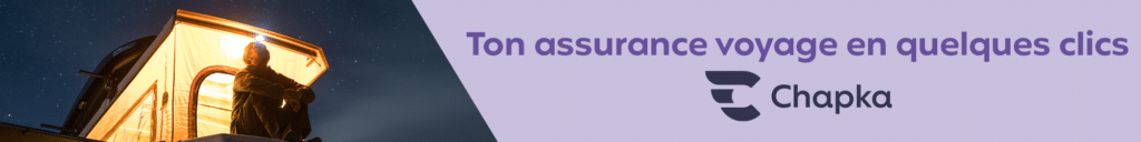 C’est pour cette raison que nous recommandons une assurance voyage longue durée comme Chapka, pensée pour les voyageurs itinérants, les road trips et les séjours de plusieurs semaines ou plusieurs mois (vérifiez quand même bien au préalable auprès de votre assurance actuelle, pour qu’il n’y ait pas de doublons).