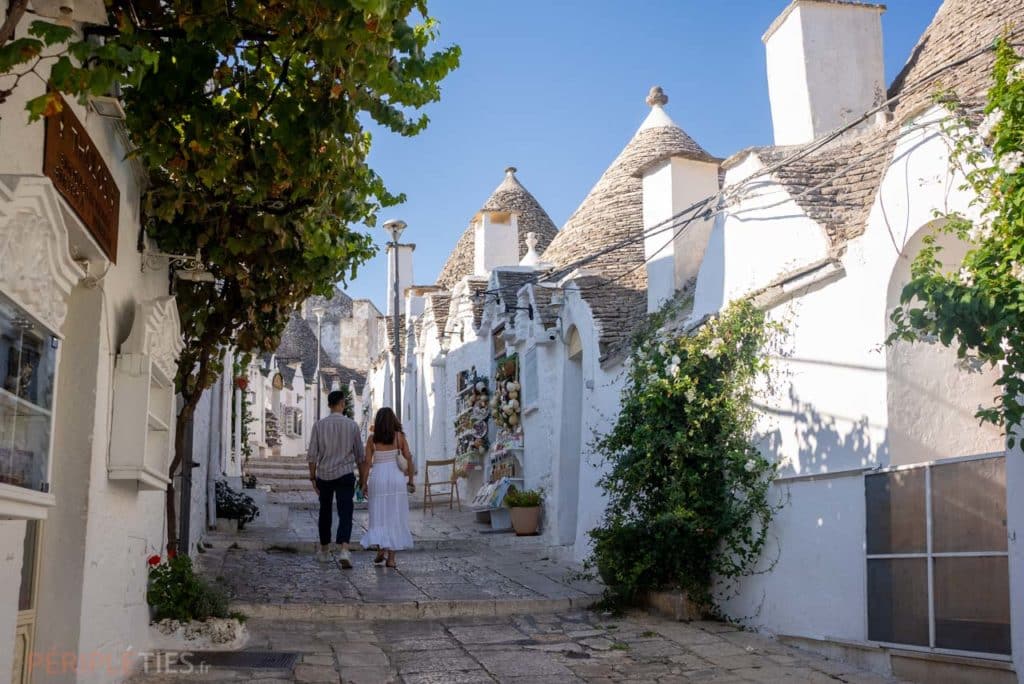 Cap ensuite vers une ville emblématique, célèbre pour son architecture unique composée de trulli, des constructions en pierre chaulée au toit conique distinctif.