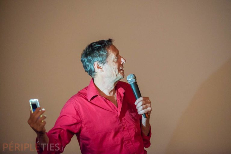 Pas de panique c’est un film ! De fiction cette fois. Et nous avons eu la chance de rencontrer l’infatigable globe-trotter et précurseur d’une forme de voyage hautement transmissible. C’était lors d’une de ces premières dates en France à la Halle des 5 Fontaines, le cinéma de Delle (Territoire de Belfort). Il a longuement échangé avec le public (plus de 2 heures !) sans oublier de se plier au jeu des selfies avec ses fans (nous, les premiers !).