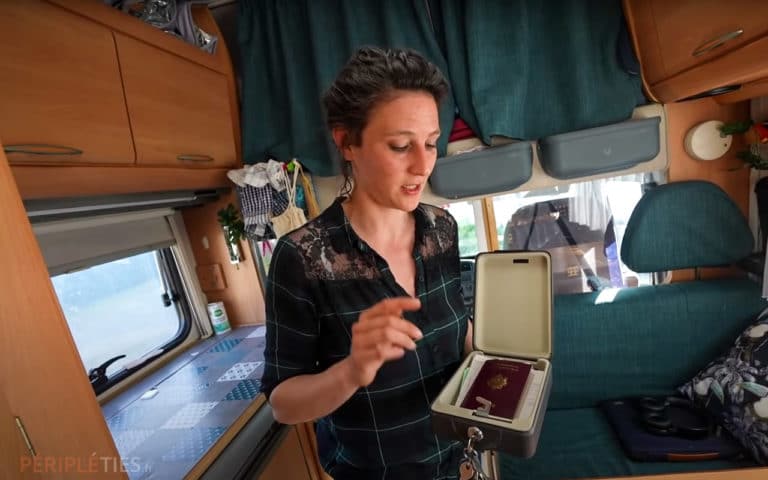 À l’intérieur de votre camping-car ou fourgon, installez un coffre-fort pour y mettre vos papiers, objets de valeur, argent que vous voulez sauvegarder à tout prix et fixer ce coffre dans un endroit discret. Vous veillerez à mettre la clé à l’abris et à ne pas la perdre !