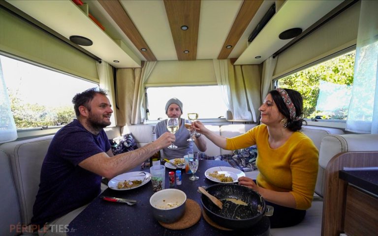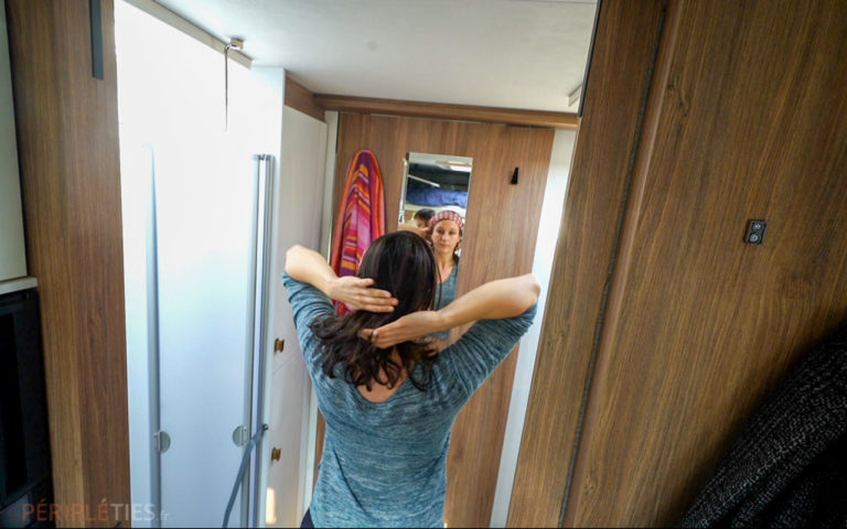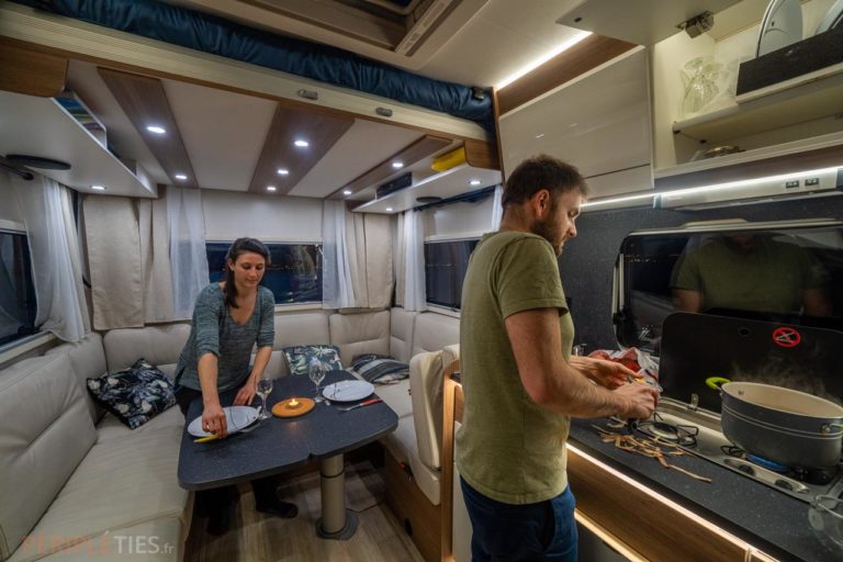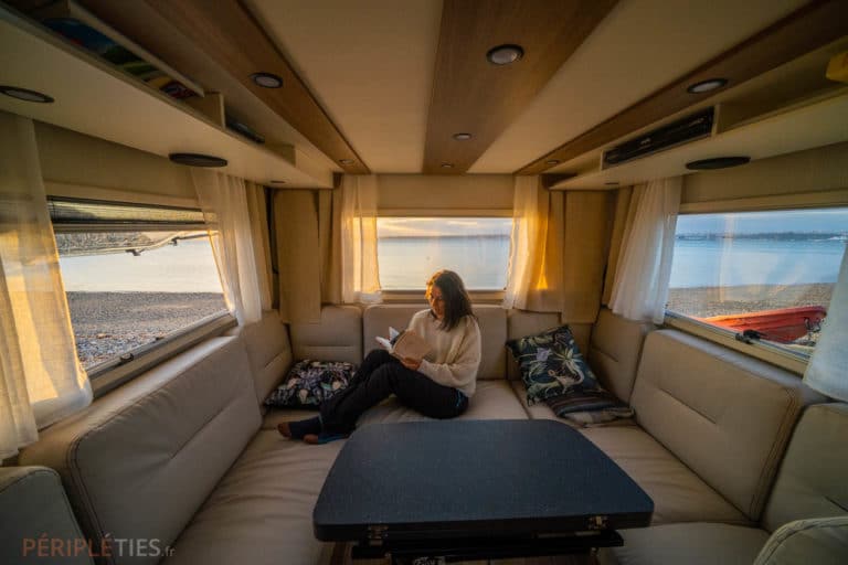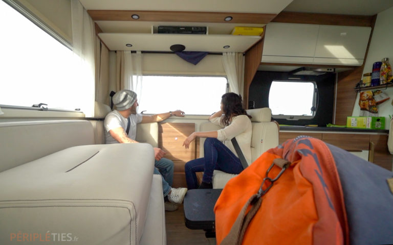 C’est un espace intérieur vraiment convivial que l’on peut partager avec plusieurs personnes. D’ailleurs nous avons eu l’occasion de voyager quelques jours avec un ami venu nous rejoindre.