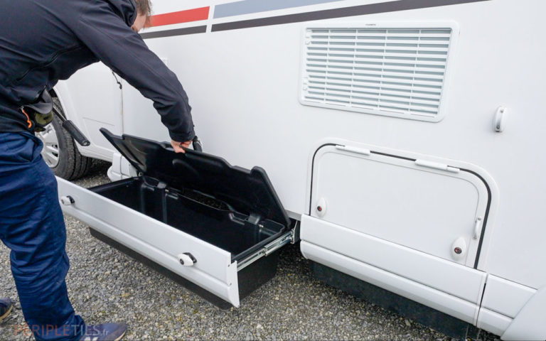 D’autant plus qu’il y a de nombreux rangements sous les banquettes, dans les placards du salon, dans la salle de bain, au-dessus du cockpit, et dans un tiroir de bas de caisse.