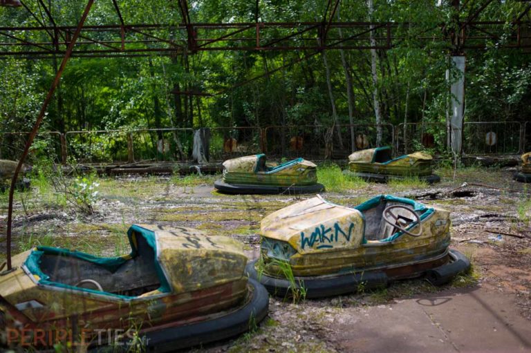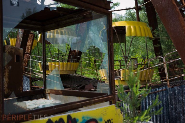 La grande roue et les autos-tamponneuses de la ville de Prypiat sont les images symboliques des vestiges que l’on retient le plus parmi ce paysage désolé. L’inauguration du parc devait avoir lieu quelques jours après l’accident