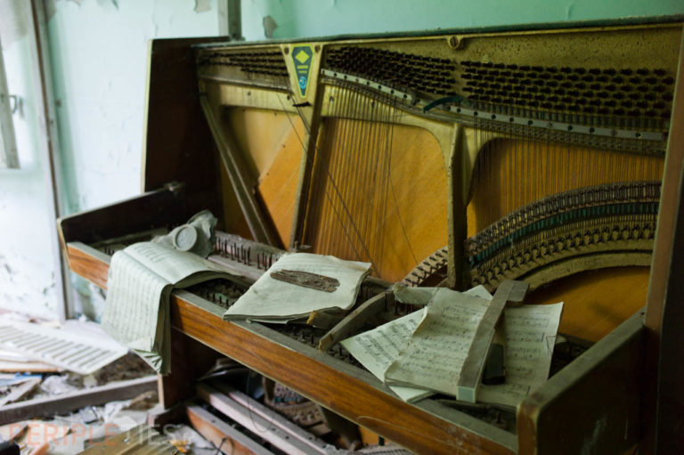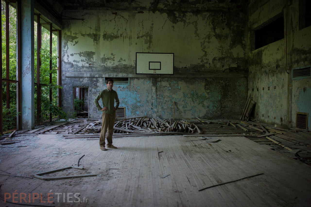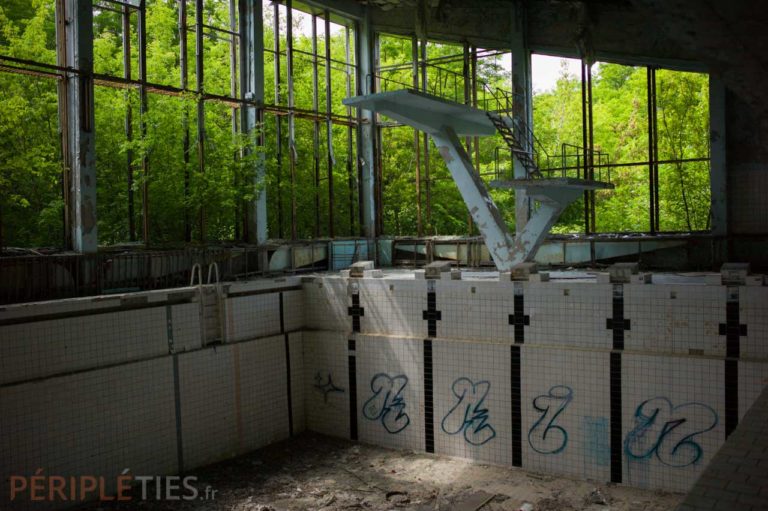 Inaugurée dans les années 1970, elle était considéré comme une ville « modèle » de l’Union soviétique. L’ancien stade de Pripyat, le gymnase, la piscine (la piscine), les murs se sont en partie effondrés, la peinture s’est effritée et le matériel a été abandonné.