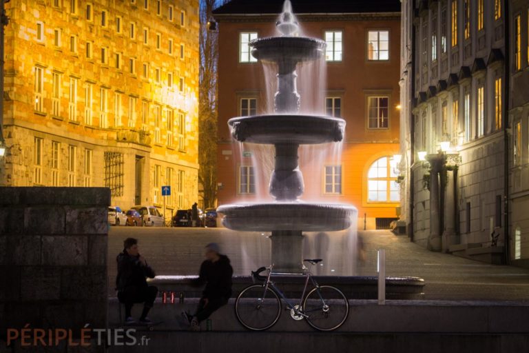Aujourd’hui, Ljubljana ne compte pas moins de 100 000 m2 de surface piétonne. Depuis la mise en place de cette nouvelle politique de mobilité, la ville affiche avoir réduit de 58 % ses émissions de gaz à effet de serre. Pendant notre voyage en Slovénie en camping-car, nous avons donc laissé notre Swinguy à Ljubljana au parking relais P+R « Dolgi most » et enfourché nos deux vélos pour une visite de la ville.